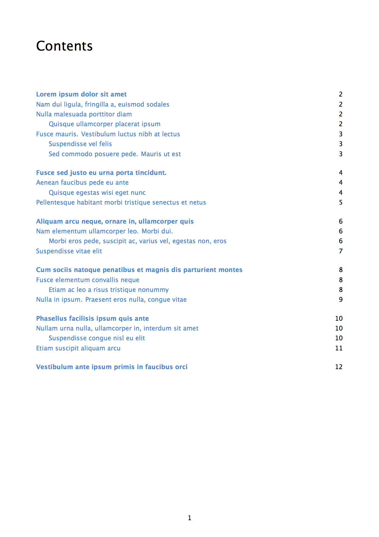 - automatic table of content creation